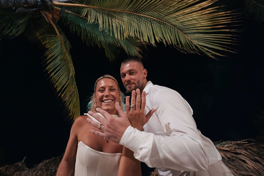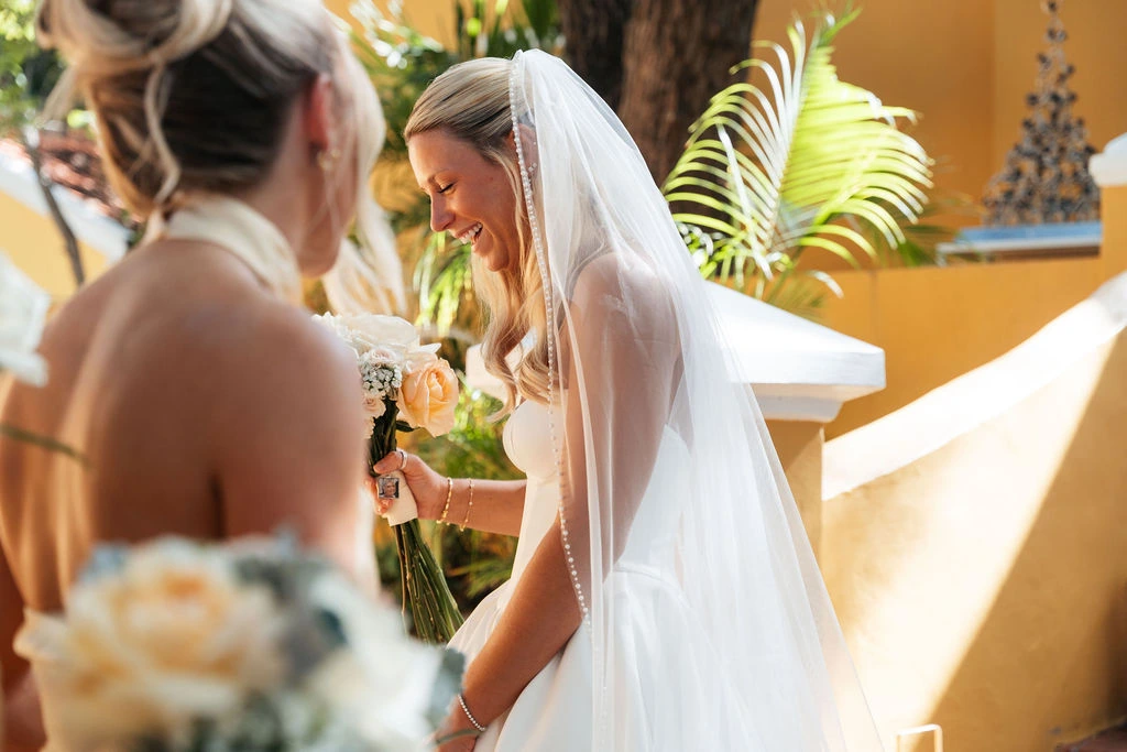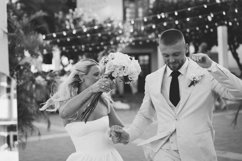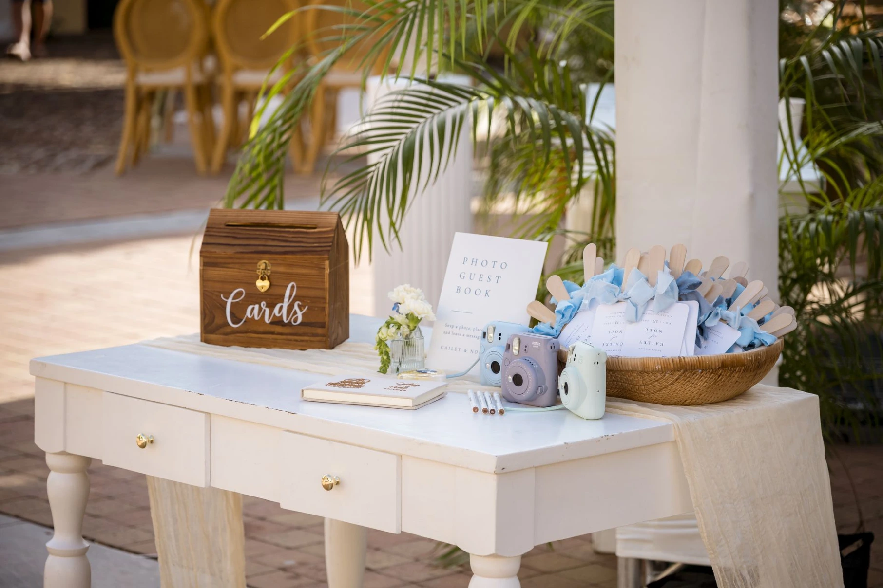 Cailey & Noel also added little elements that made the whole wedding feel unmistakably like them. From tequila shots with the wedding party immediately after the ceremony (the official kick-off) to drink stirrers and dog-head sticks to party with, to signature cocktails like coconut margaritas and rum punch — even down to the funnel Cailey & Noel both drank from. This wedding didn’t just look beautiful. It felt personal, joyful, and completely them.