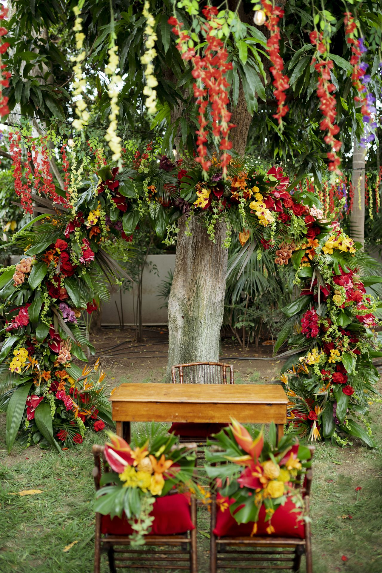 The ceremony backdrop was one of my favorite elements—a half-moon arch overflowing with vibrant, colorful flowers. It set the stage beautifully and tied in perfectly with my favorite detail of all: the colors. Each member of my bridal party was assigned a unique shade, each carrying a different flower that represented them—different, beautiful, and completely their own—which all came together in my bouquet.
